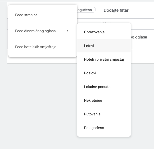 Postoji više vrsta feedova koje možete kreirati u dokumentima i prenijeti u Google Ads sustav: