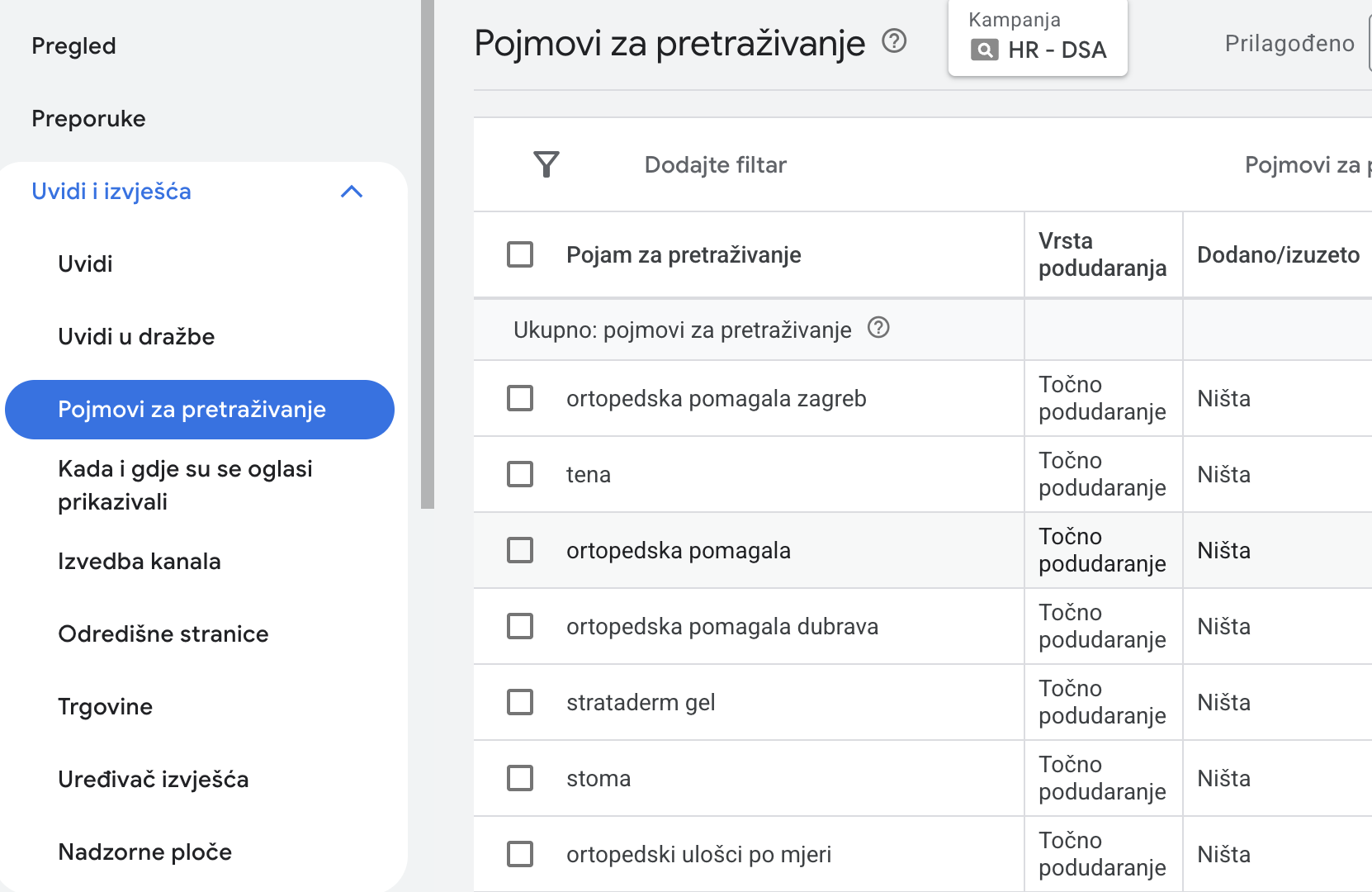 - Nadzirite pojmove za pretraživanje i redovito dodajte negativne ključne riječi na sve kampanje