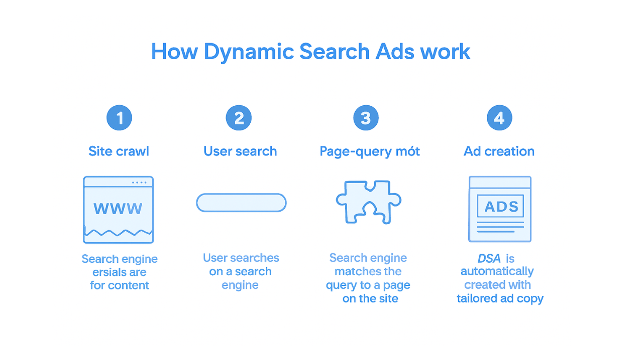 Kada korisnik u tražilicu upiše pojmove vezane uz vaše proizvode i usluge Google na temelju naslova i tekstova na vašoj stranici generira oglas i odgovarajući landing page kako bi korisniku dao što bolji odgovor na njegov upit.