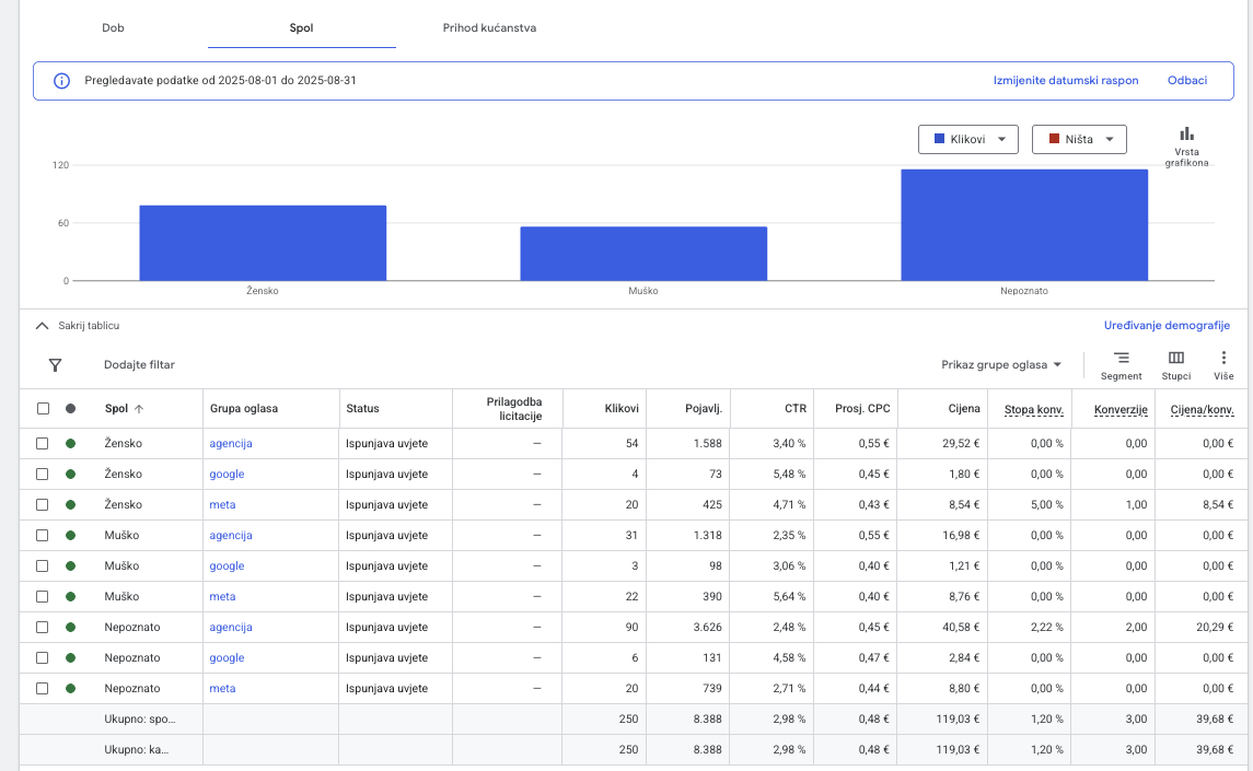 Naravno, ne morate skroz isključiti određene grupe, već možete samo povećati ili smanjiti cijenu koju ste spremni platiti za klik.
