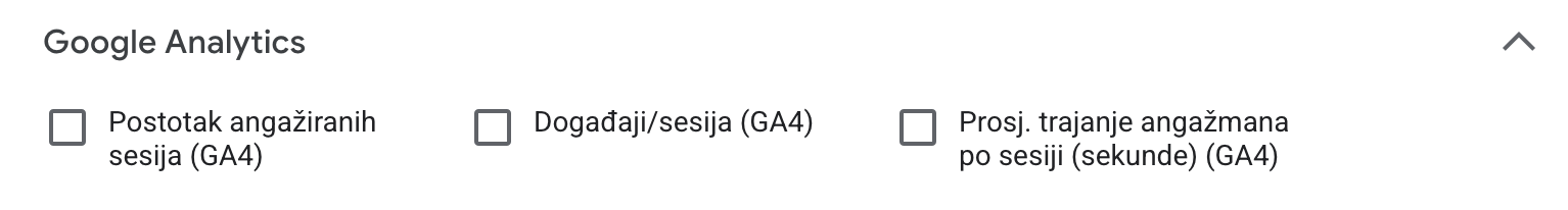 Uz osnovne stupce ovisno o vlastitim potrebama moguće je dodati stupce koji se odnose na neke specifične potrebe vezane uz vaše kampanje i optimizaciju istih.