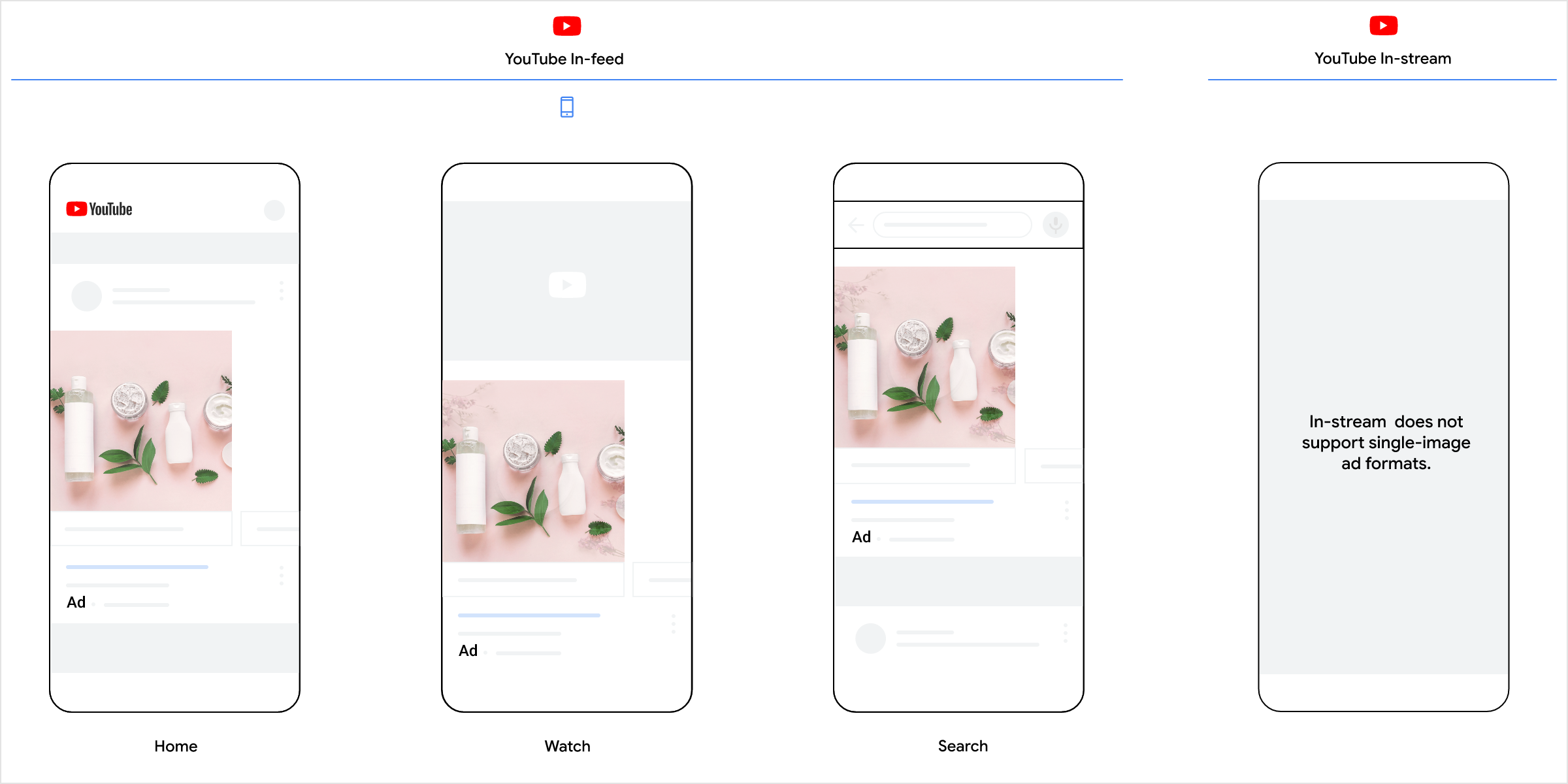 - YouTube In-stream i Feed: Oglasi unutar videozapisa i na početnoj stranici aplikacije.