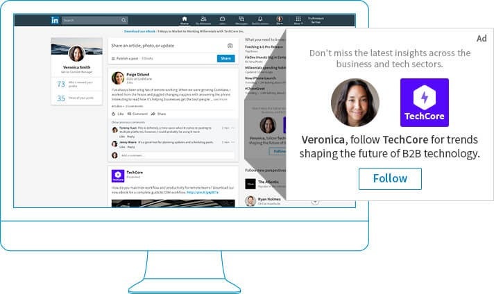 - Follower Ads: potiču korisnike da zaprate vašu LinkedIn stranicu i povećaju publiku