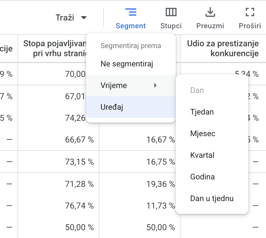- Iskoristite segmentaciju da biste vidjeli koji uređaji su kompetentniji i u koje doba dana ili tjedna su vaši konkurenti najaktivniji.